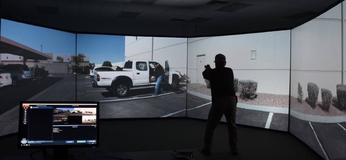 The system is programmed with hundreds of scenarios filmed with actors in a variety of environments. Settings can be customized to train participants at a specific location while realistic ballistics are capable of replicating live gunfire. Trainees, for example, can practice arriving at a particular school where shots have been reported, investigate the scene, engage with a suspect, discharge a weapon, get struck themselves, and then study shot sequences and trajectories in the training debrief.